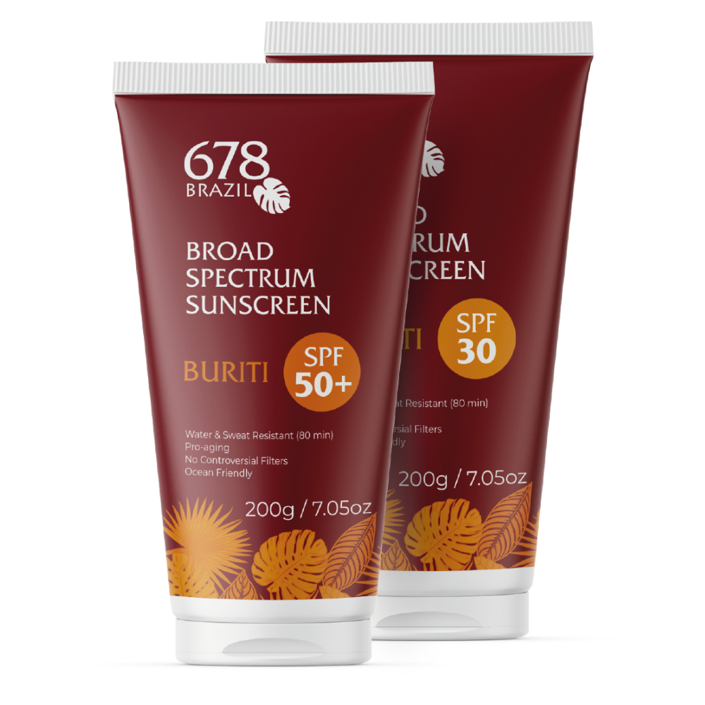 Because BURITI is rich in Beta-carotene, Vitamin E, Vitamin C, and Omega 9, these lotions prevent sunburn while helping to prevent skin premature aging (pro-aging) and to restore its natural protective barrier. Protect from sun, sea salt, and pool chlorine.